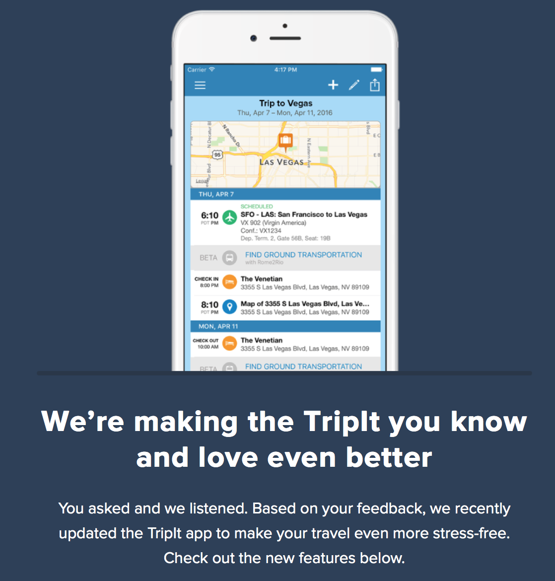 TripIt notified users this week of an update to there iOS mobile app (promises of an Android update were made!) which included some user feedback requests, which is always a good thing! We reviewed the app back in February and ultimately felt it was a great app we really wanted to get on with but did struggle. Maybe these new additions will help!